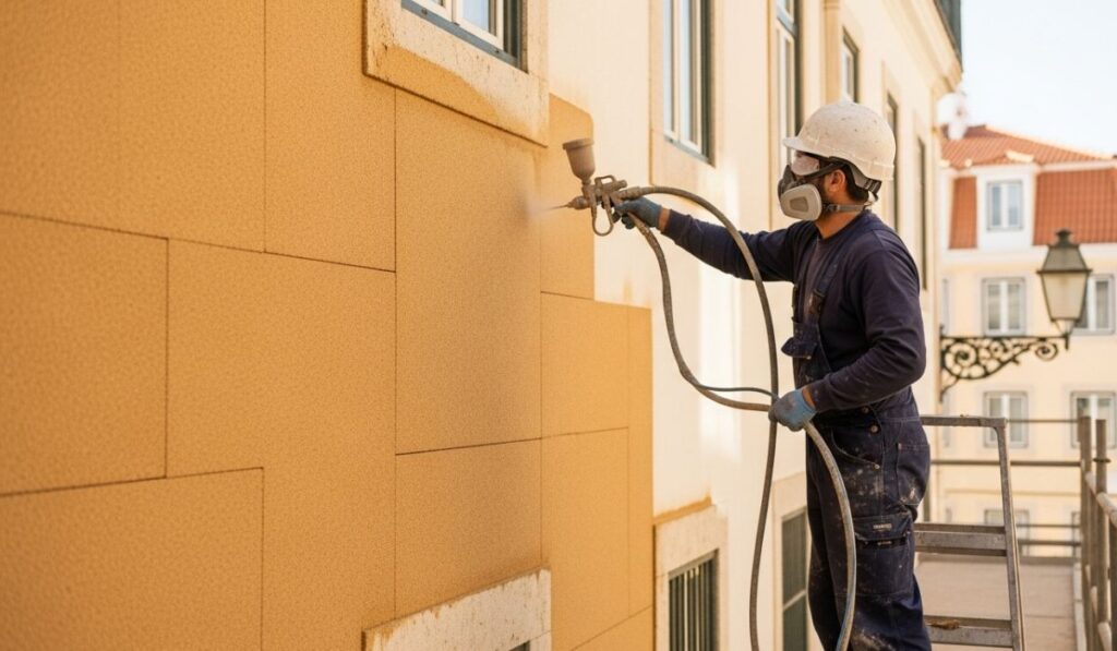 Em Setúbal, a reabilitação de fachadas com cortiça projectada é a forma mais inteligente de proteger os edifícios da degradação causada pela proximidade ao mar e pela exposição solar.